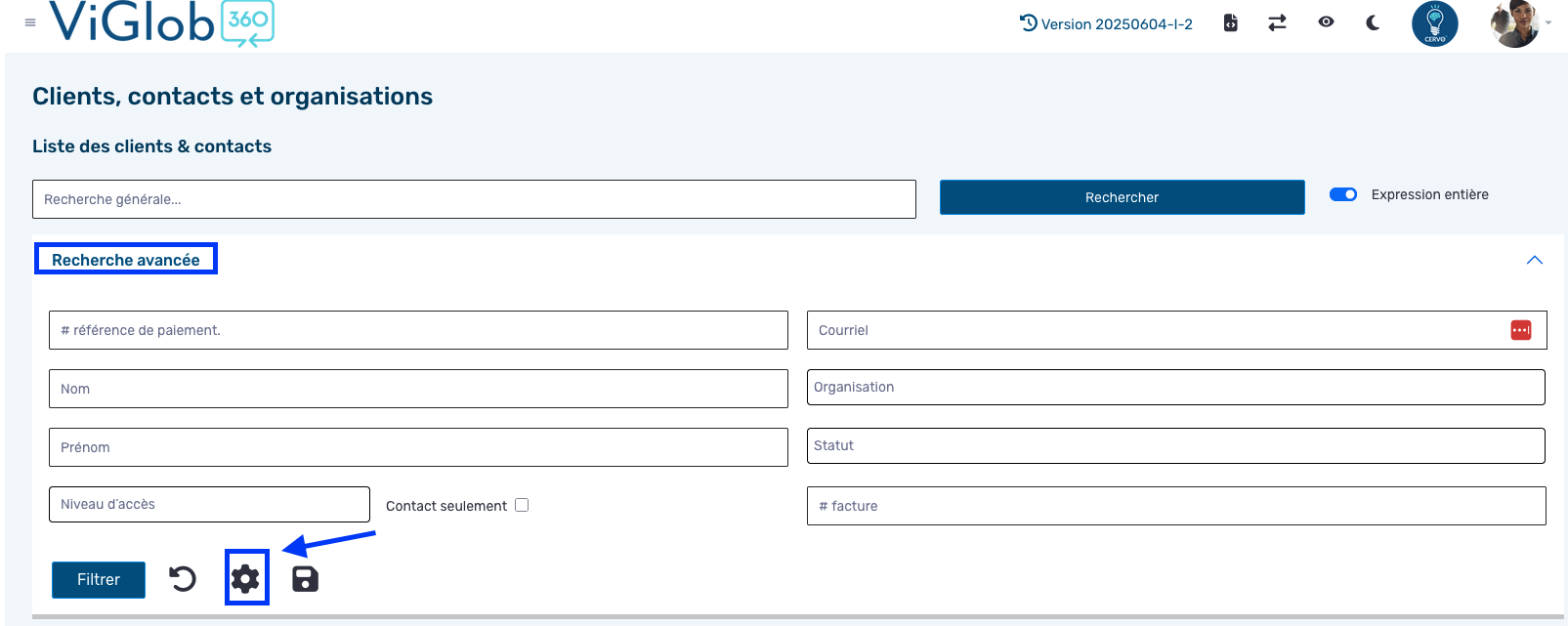 Cliquez sur le terme « Recherche avancée »pour faire apparaître la section complète.