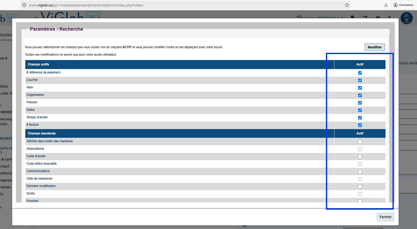 Vous pouvez ajouter des champs dans votre recherche avancée, afin de filtrer plus facilement les membres selon les informations désirées.