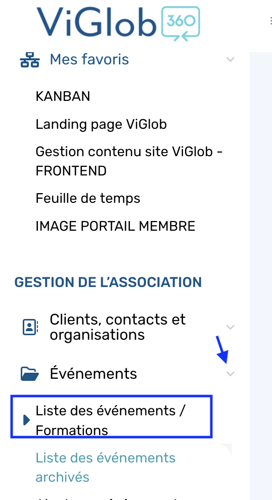 - Accédez au module Événements, onglet Liste des événements/ formations .