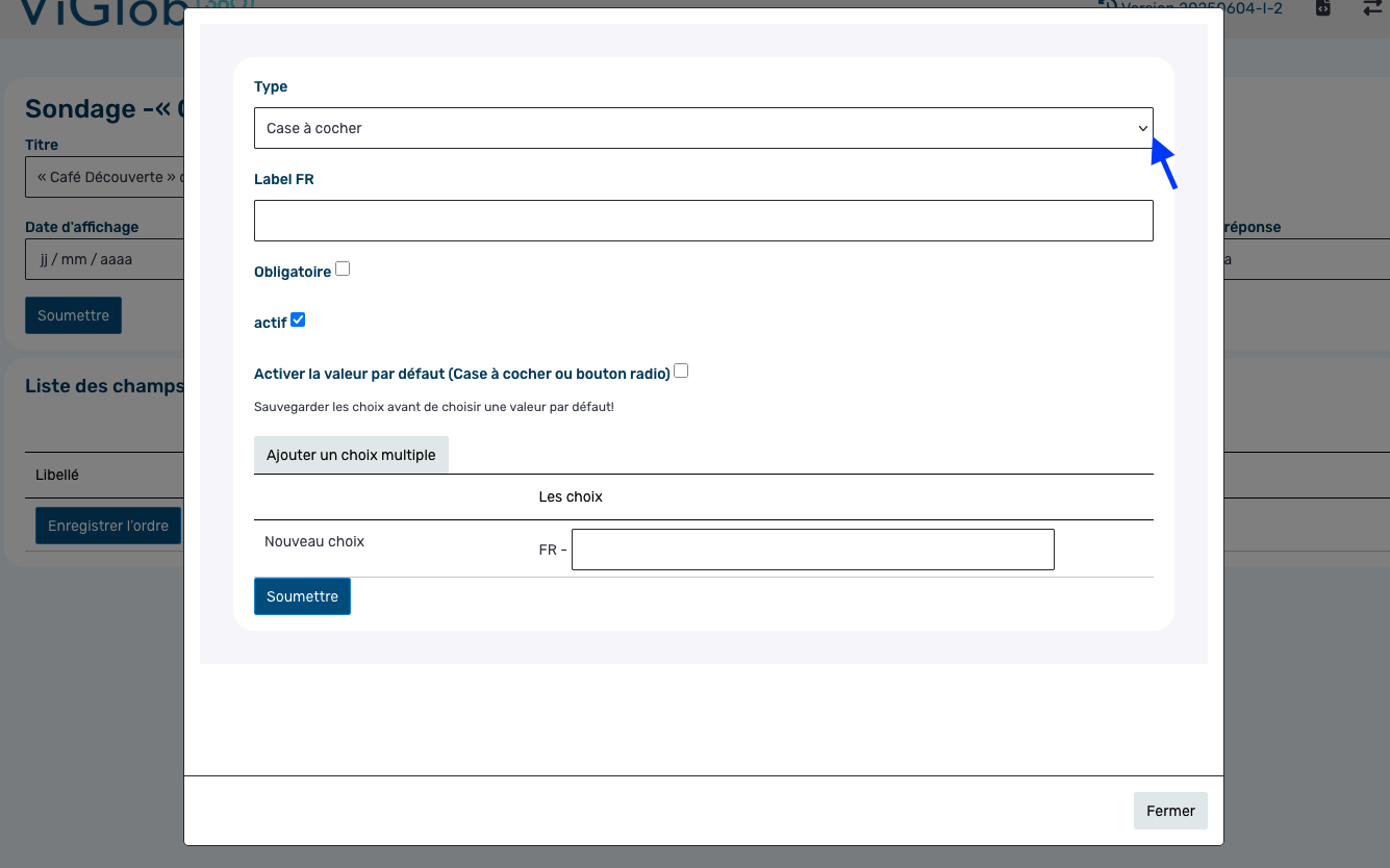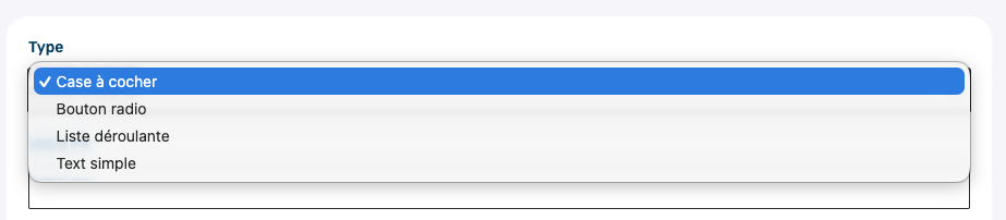 Ajoutez le libellé de la question, indiquez si le champ est obligatoire ou non, et ajoutez les choix de réponse si nécessaire.