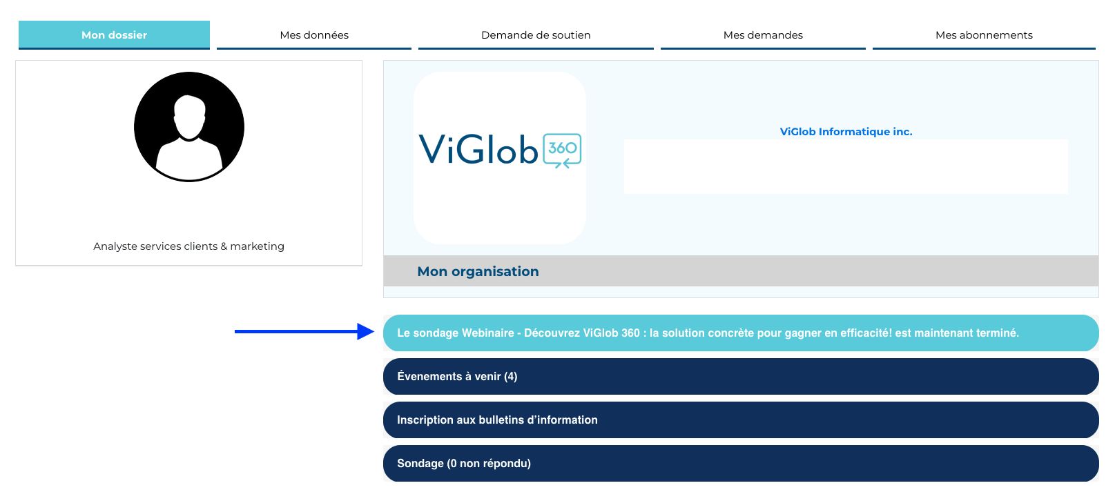Ce sondage sera visible par les participants dans leur espace membre sur votre site.