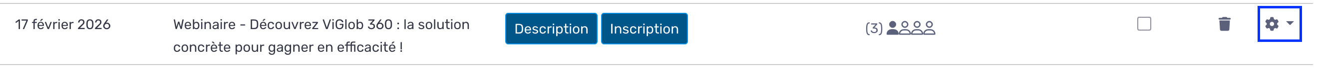 - Cliquez sur l’icône d’engrenage située à l’extrême droite de l’événement.