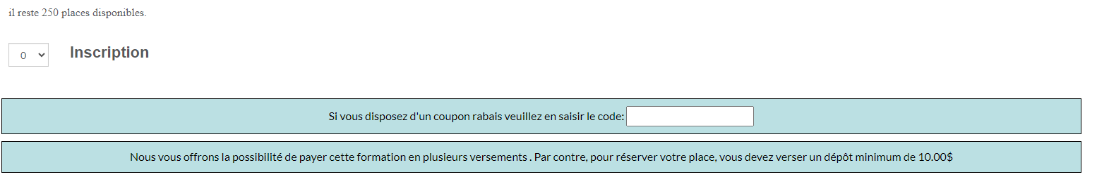 - Lors de l'inscription, le système offre d'entrer le code du coupons au bas de la page, si vous n'avez pas créé de coupon, le systéme ne l'offre pas.