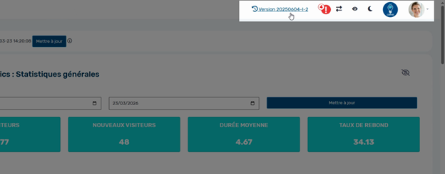 Cliquez sur votre photo de profil pour accéder à votre profil, aux exports Excel et à la déconnexion.